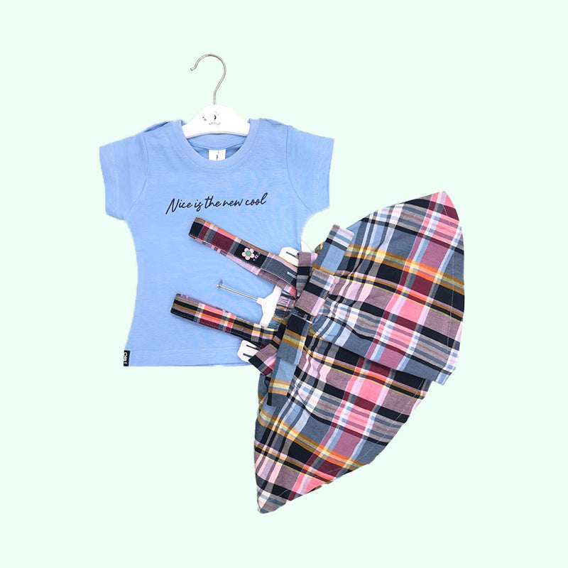 BLUE CHECKS DUNGREE SKIRT WITH TSHIRT (Blue)