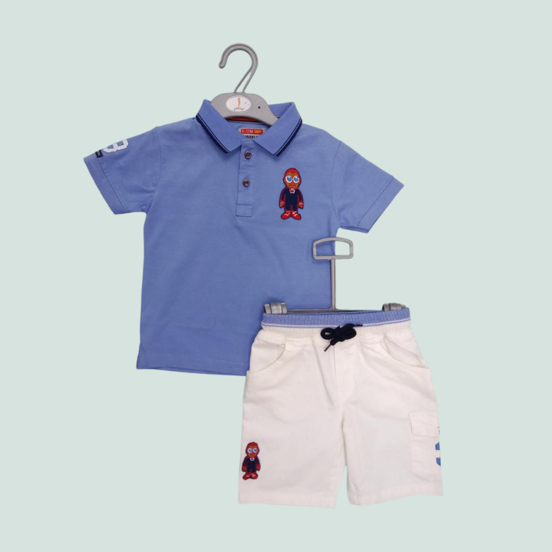 BLUE POLO TSHIRT WITH WHITE DENIM SHORTS
