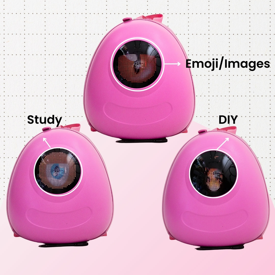 Power by power bank,pair the Backpack to your smart phone device by Bluetooth connection,use the APP to control displayed images, animations or text right on your Backpack.