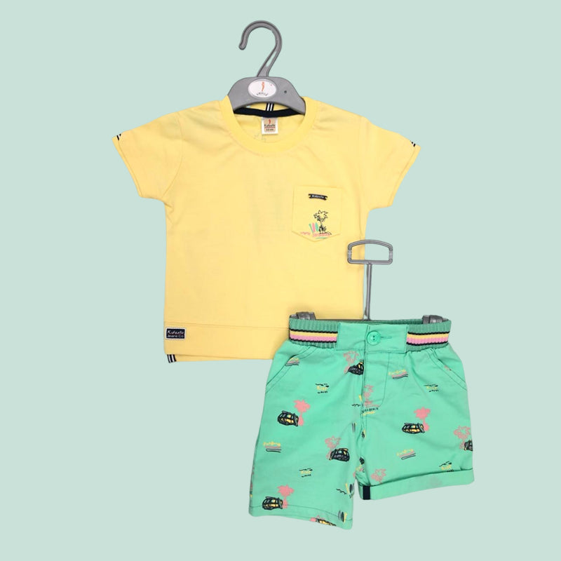 LEMON YELLOW TSHIRT AND GREEN SHORTS