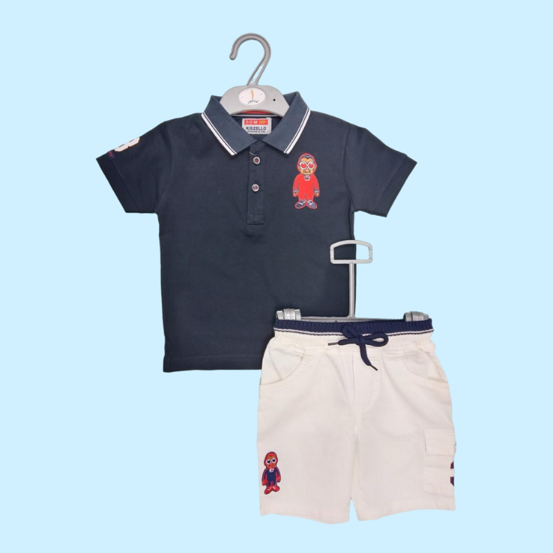 NAVY POLO TSHIRT WITH WHITE DENIM SHORTS