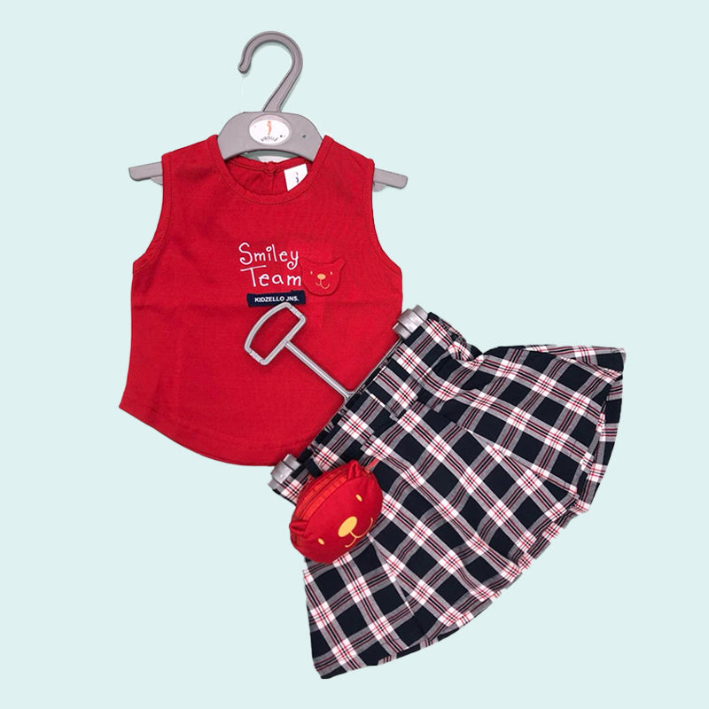 RED TOP AND CHECKS SKIRT